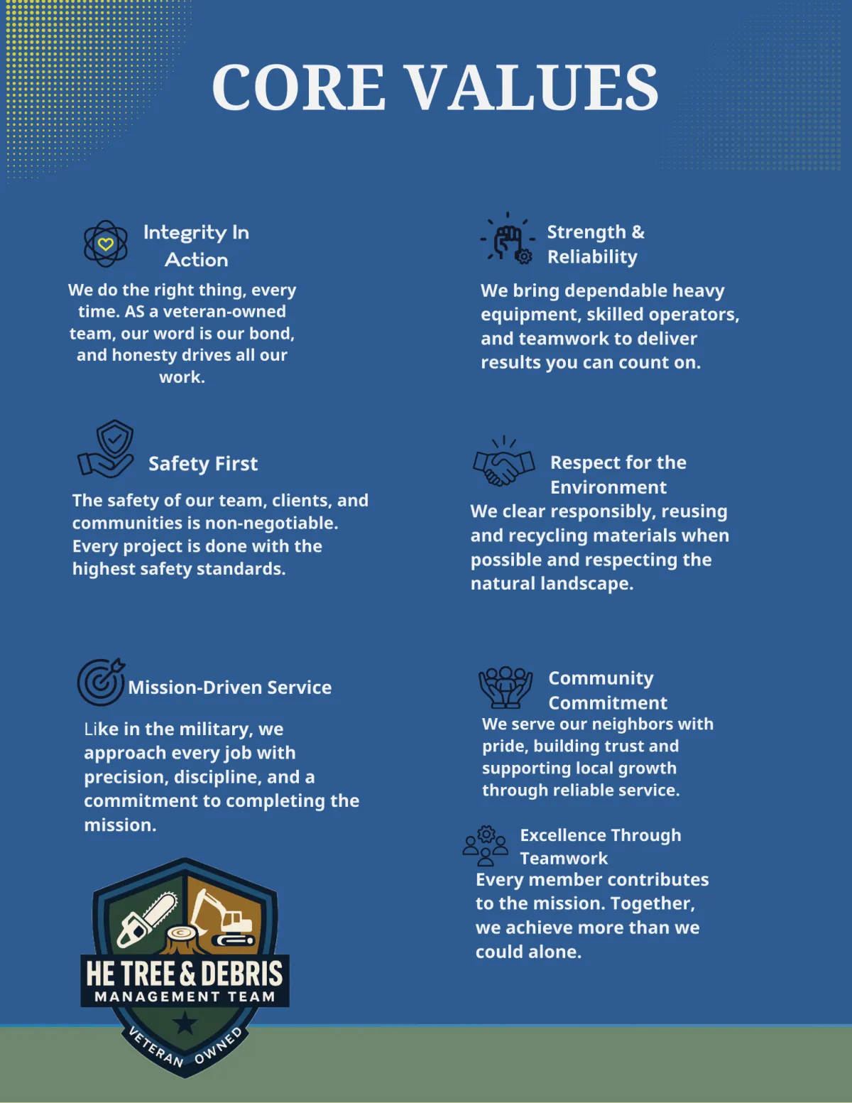 “At HE Tree & Debris Management, we get the job done safely, efficiently, and with integrity, every time.”